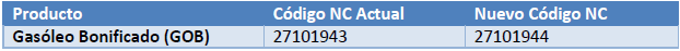 Este cambio afecta específicamente a los productos clasificados bajo la Nomenclatura Combinada (NC) relacionada con el Gasóleo Bonificado (GOB).